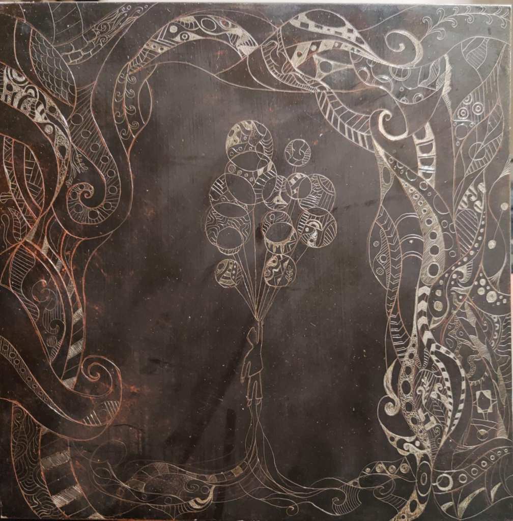 - Gratter la couche du vernis appliqué dans la plaque de zinc