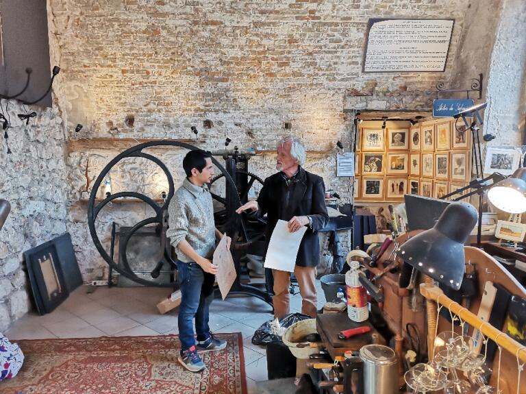 Mon initiation à la gravure à l’eau-forte s’est faite à l’Atelier du Safranier, à Antibes, sous la guidance du professeur Dominique Prévost. Cette technique consiste à utiliser un acide pour mordre des plaques de zinc ou de cuivre, afin d’y graver le dessin en taille-douce. Une partie de ce travail est aujourd’hui exposée à la Galerie de l’Atelier du Safranier, à Antibes.